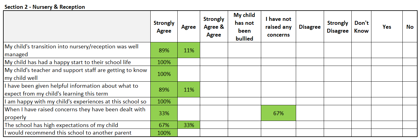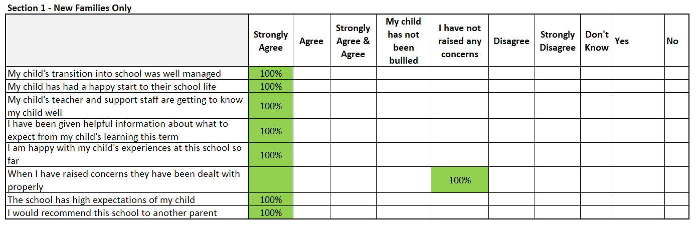 | My child is happy at school | 100%